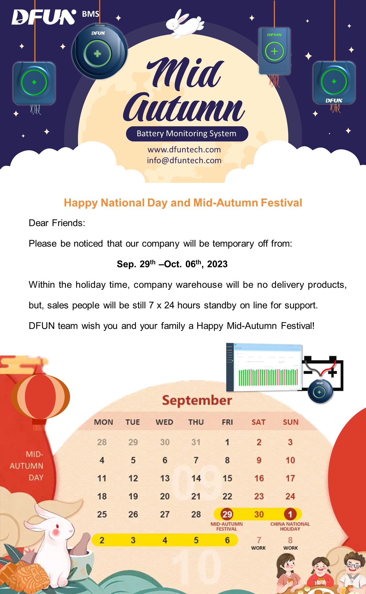 Bonne fête de la mi-automne et bonne fête nationale. L'équipe DFUN vous souhaite, à vous et à votre famille, un festival sain et prospère !