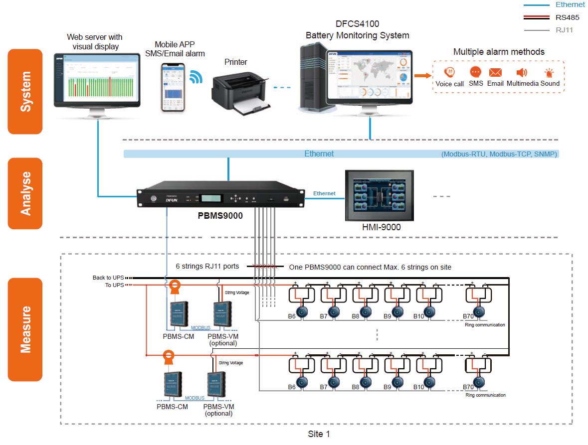 Le PBMS6000 PRO adopte une structure distribuée « un capteur pour une batterie », une surveillance en ligne en temps réel 24 heures sur 24, une détection rapide et précise des cellules désactivées, une alerte précoce et l'élimination des risques de sécurité.